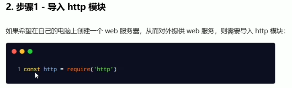 ① 导入http模块:require导入