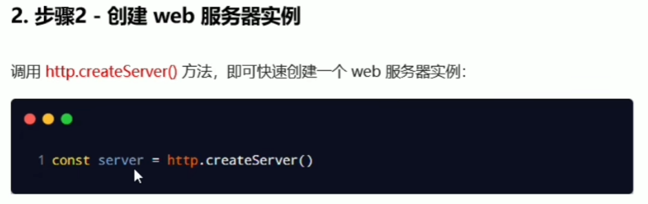 ② 创建web服务器实例:调用http.createServer()方法
