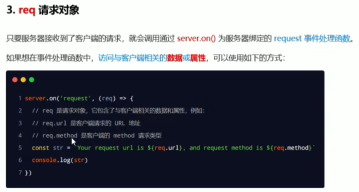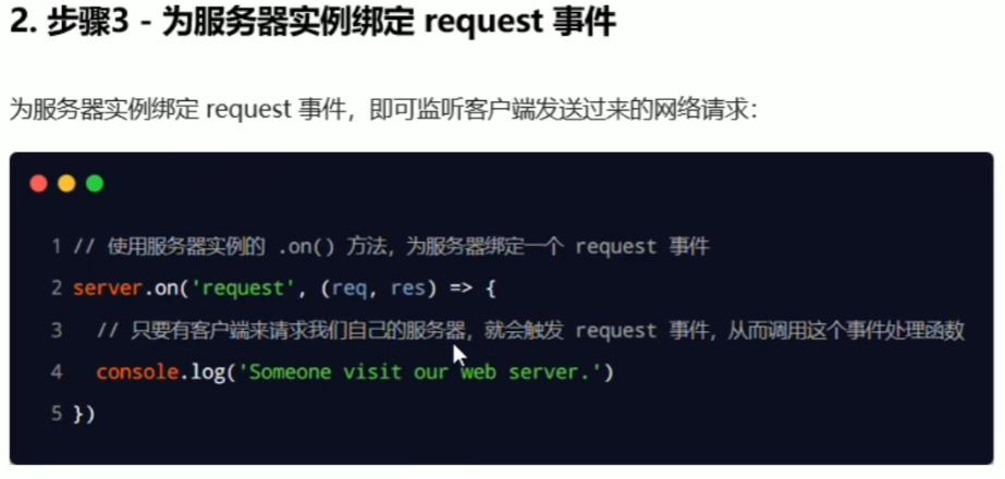 ③ 为服务器绑定request事件:使用on方法绑定