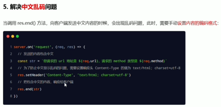 res.setHeader('Content-Type', 'text/html;charset=utf-8') //解决乱码