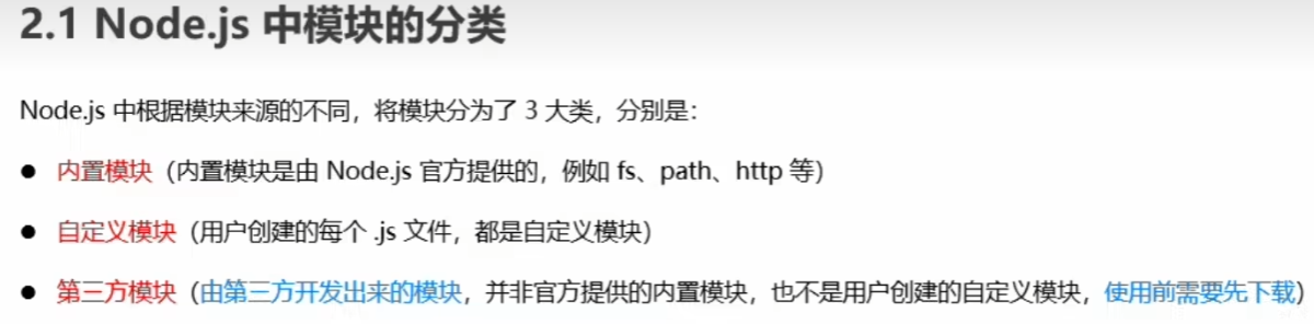 Node.js中模块的分类:内置模块、自定义模块、第三方模块