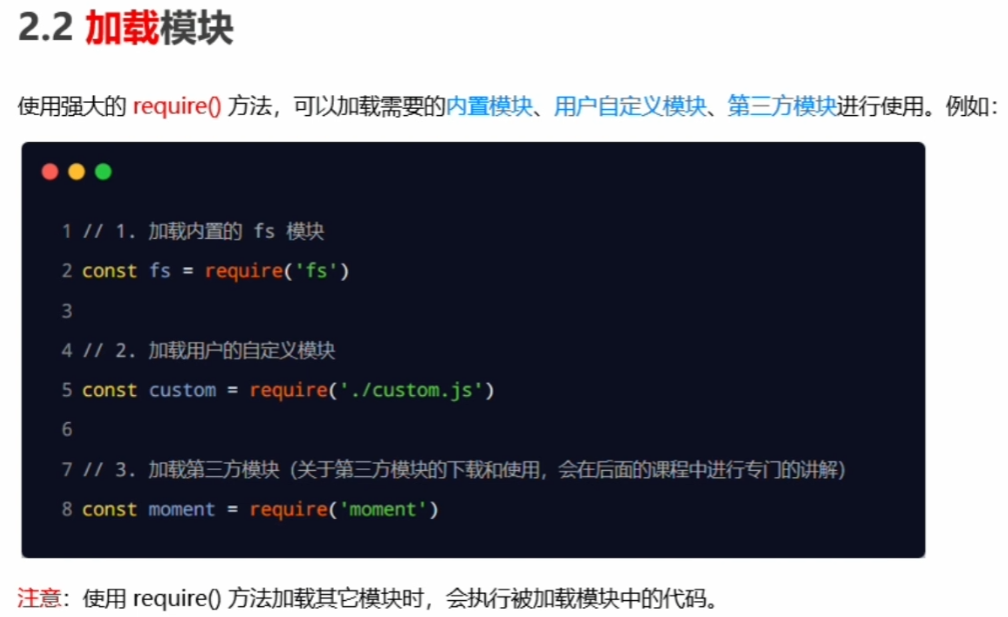 ③ 加载某个模块,即加载模块的module.exports属性,require用于加载模块。