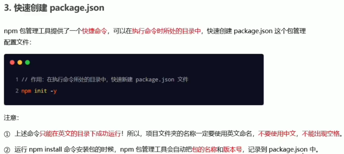 快速创建package.json:npm init -y
