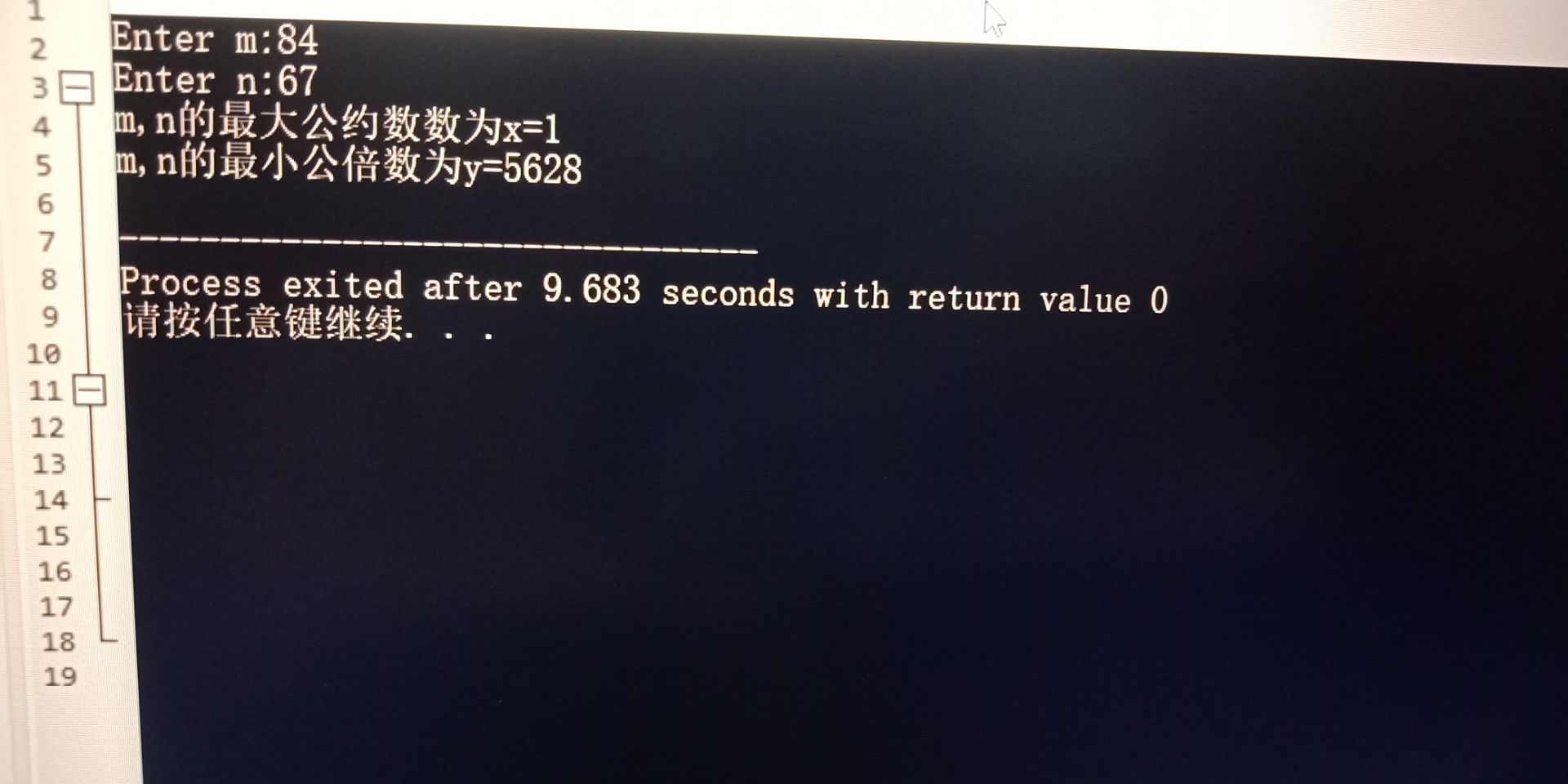 printf("m,n的最小公倍数为y=%d\n",y);