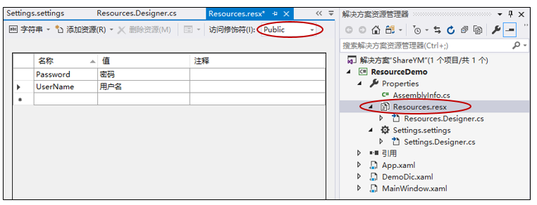 为了让编译器能够访问这个类,一定把Resource.resx的访问级别由Internal改为Public;
