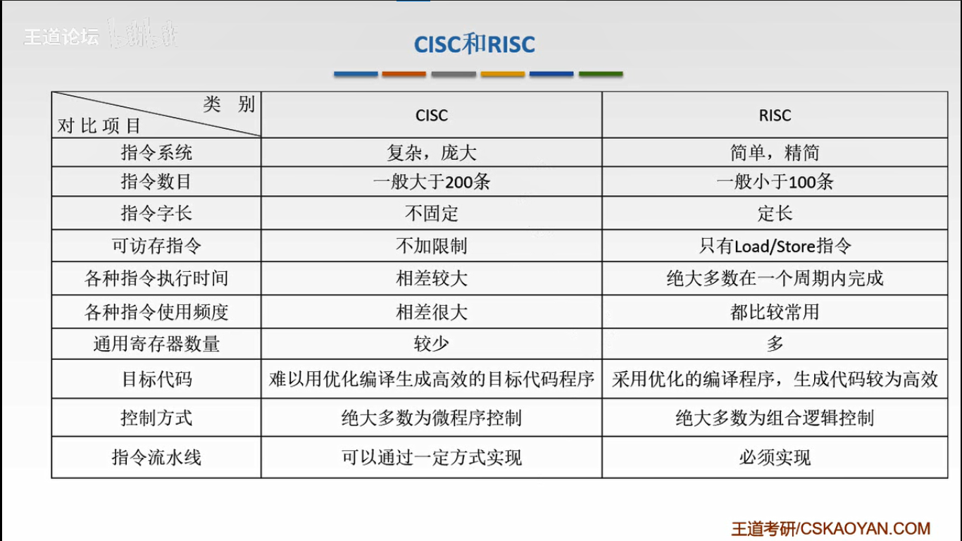 2.指令长度固定,指令格式种类少,寻址方式种类少。