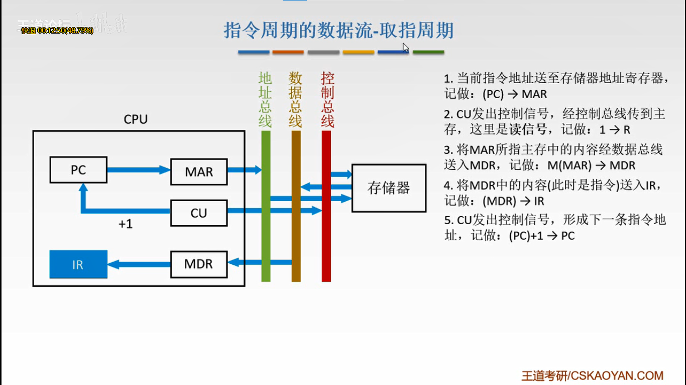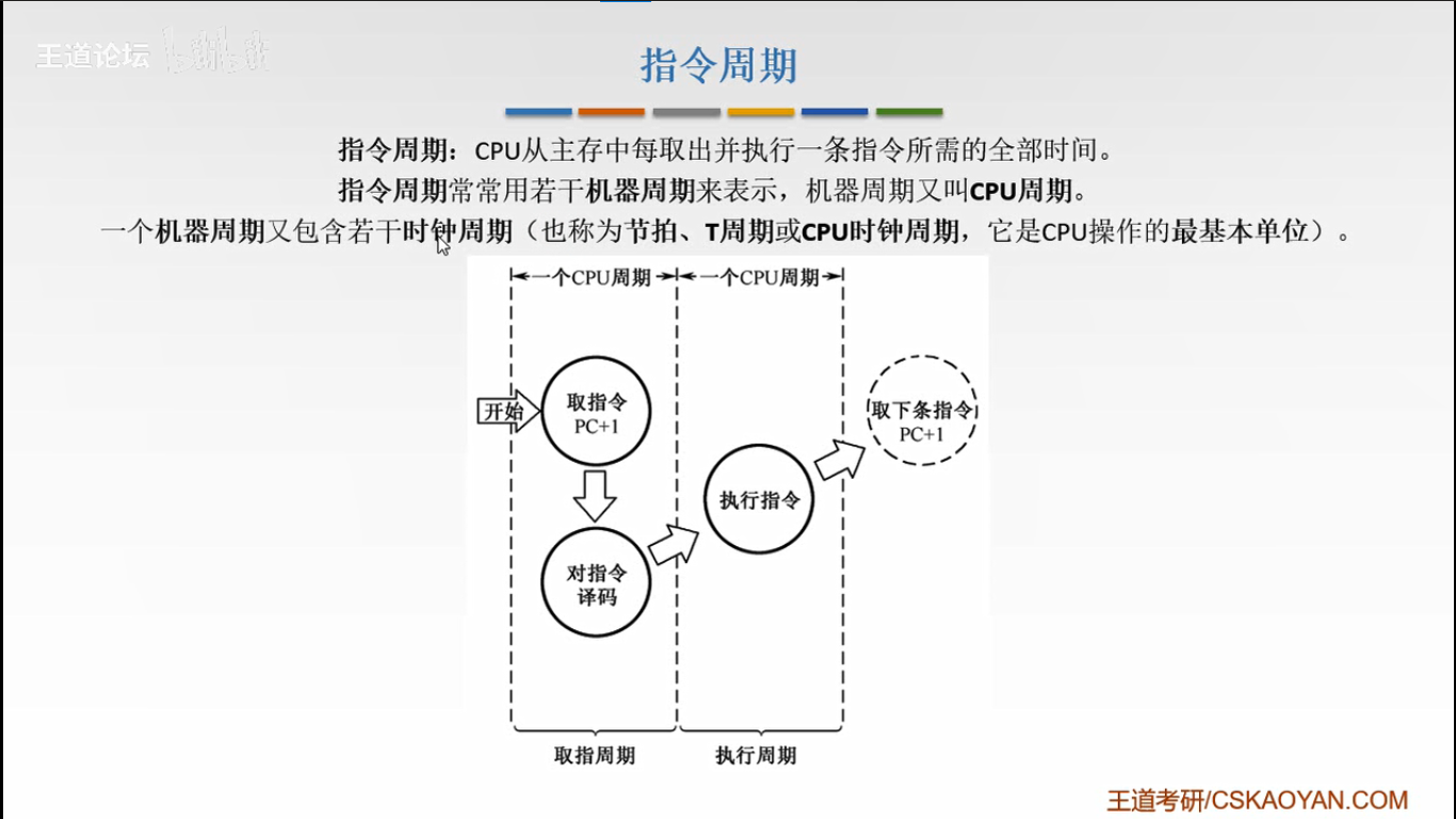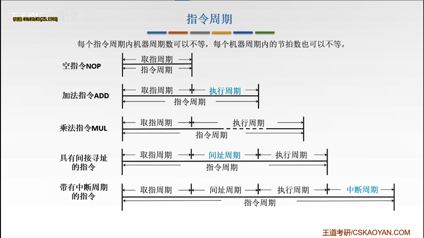 指令周期:CPU从主存中取出并执行一条指令所需全部时间