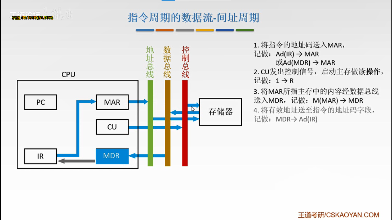 5.此时有效地址在MDR;有两种思路1.将有效地址送到IR中,开始寻址;2.直接从MDR中取有效地址