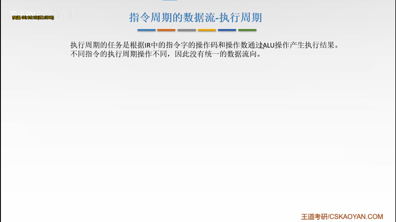 执行周期的任务是根据|R中的指令字的操作码和操作数通过U操作产生执行结果。不同指令的执行周期操作不同,因此没有统一的数据流向。