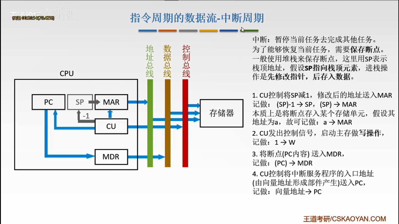 6.CU将向量地址(中断服务程序的入口地址)放到PC中