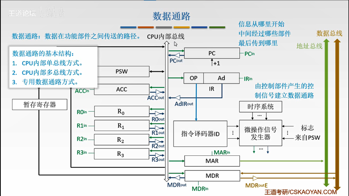 数据通路的种类:CPU内部的单总线和多总线,以及专用数据通路