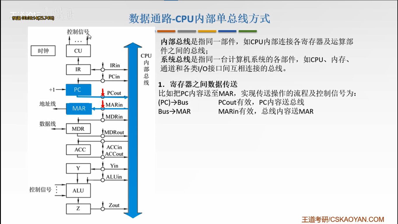 (MAR)→主存 C1有效 MAR将地址送到主存