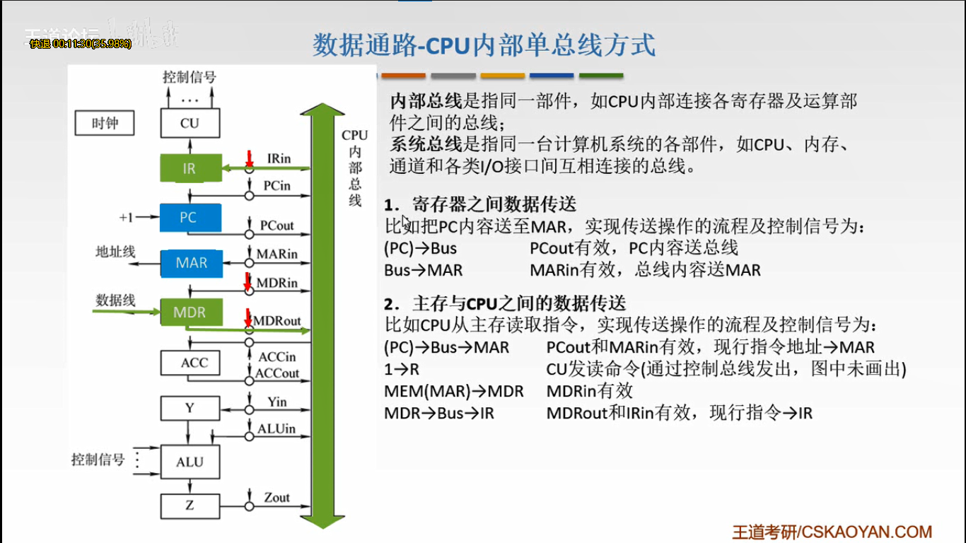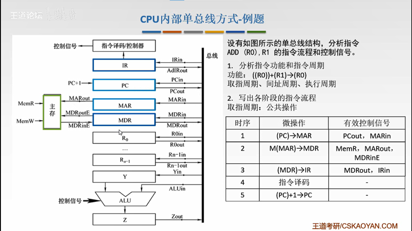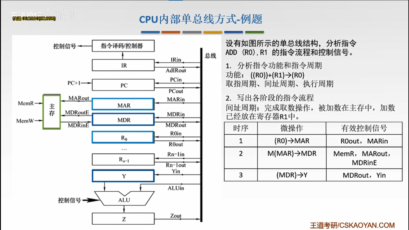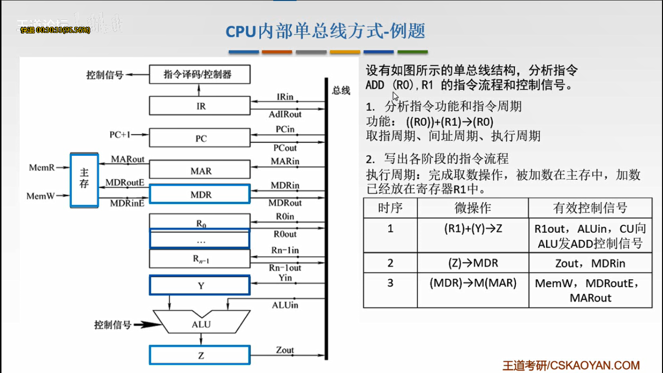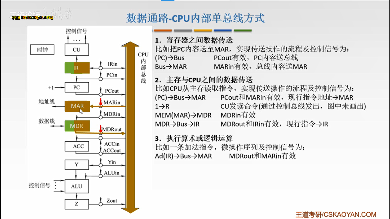 MEM(MAR)→数据线→MDR MDRin有效 (主存用MAR的地址找到操作数通过总线送到MDR)