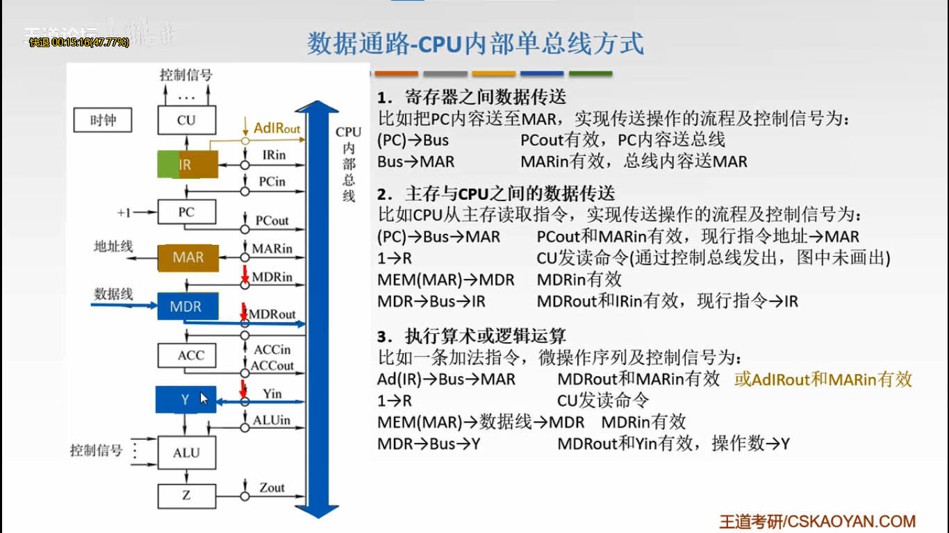 MDR→Bus→Y MDRout和Yin有效,操作数→Y (MDR将操作数通过总线送到寄存器Y)