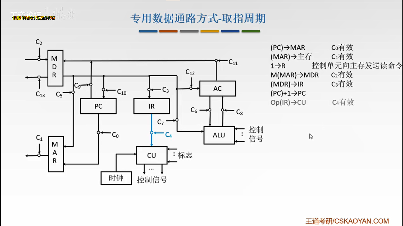 Op(lR)→CU C4有效 IR将指令中的操作码字段送到CU中生成操作信号