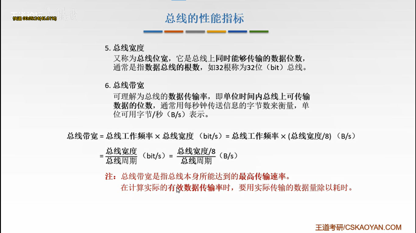 总线带宽=总线工作频率×总线宽(bit/s)=总线工作频率×(总线宽度/8)(B/S)