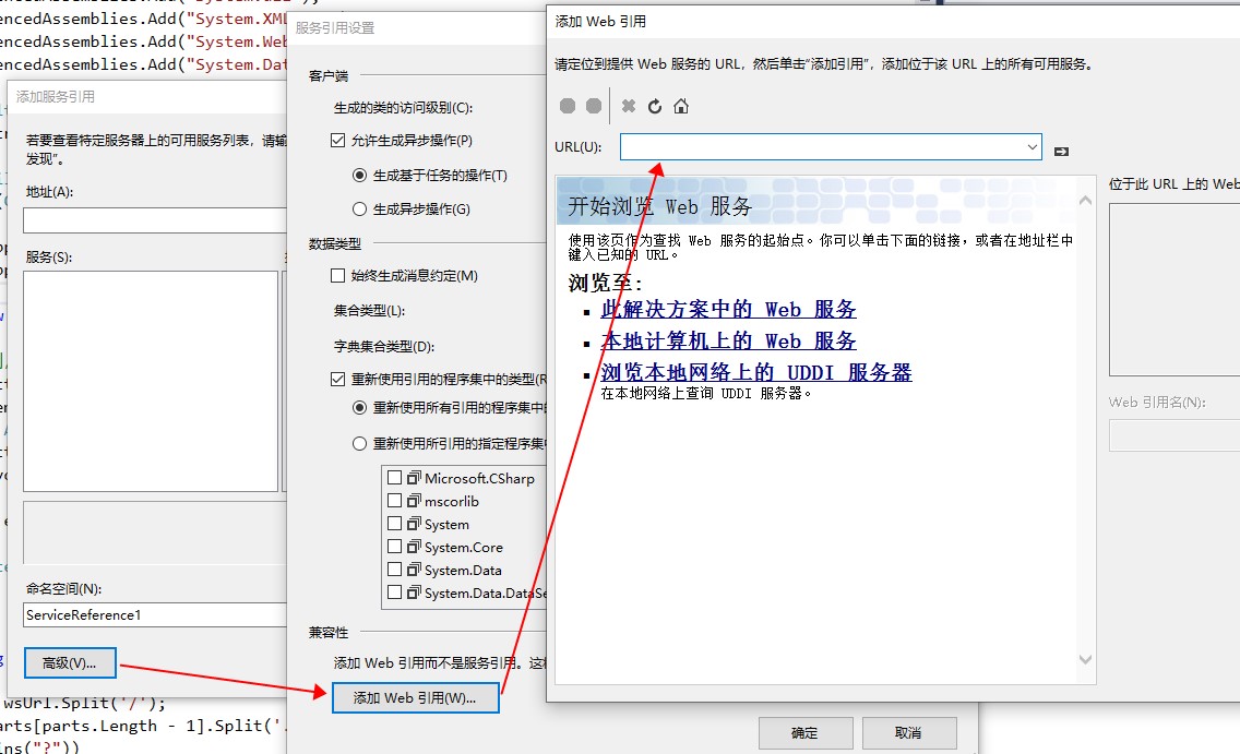 在VS中,添加服务引用--高级--添加web引用 直接输入webservice URL