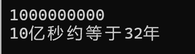 //计算10亿秒约等于多少年,并打印输出 #include <stdio.h> #include <math.h> int main() { int year,y; int s; scanf("%d",&s); year=s/(3600*24*365) ; if(s%(3600*24*365)>=0.5) printf("10亿秒约等于%d年\n",year=year+1); else printf("10亿秒约等于%d年\n",year); return 0; }