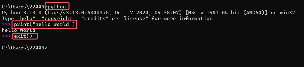 1、cmd进入命令行,输入python回车,即可进入交互式环境