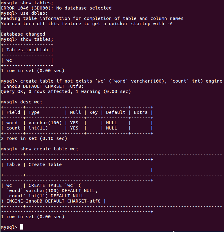 一、mysql准备接受数据的数据库与表