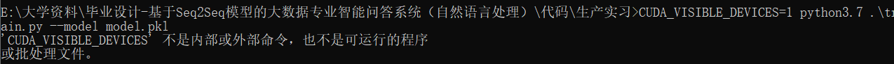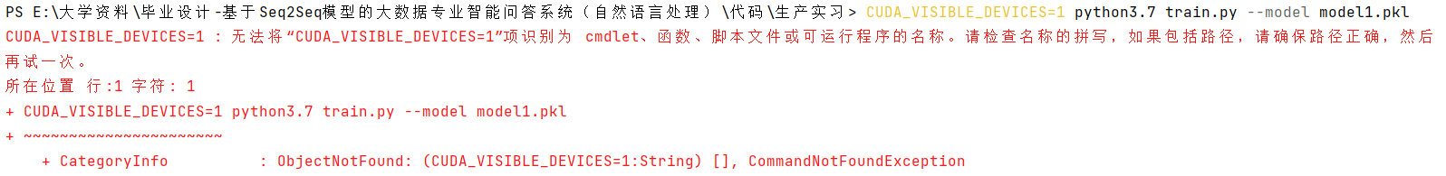 在pychrm终端运行:CUDA_VISIBLE_DEVICES=0 python3.7 .\train.py --model model.pkl 报错了,