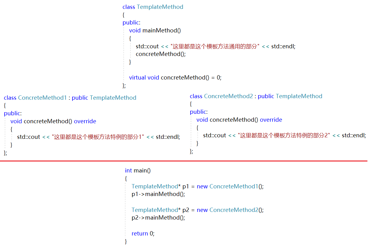 模板方法模式,定义一个操作中的算法的骨架,而将一些步骤延迟到子类中。模板方法使得子类可以不改变一个算法的结构即可重定义该算法的某些特定步骤。