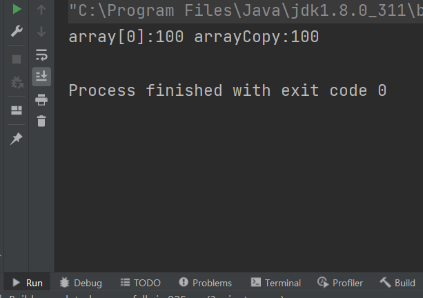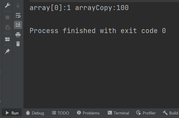 System.out.println("array[0]:"+array[0]+" arrayCopy:"+arrayCopy[0]);