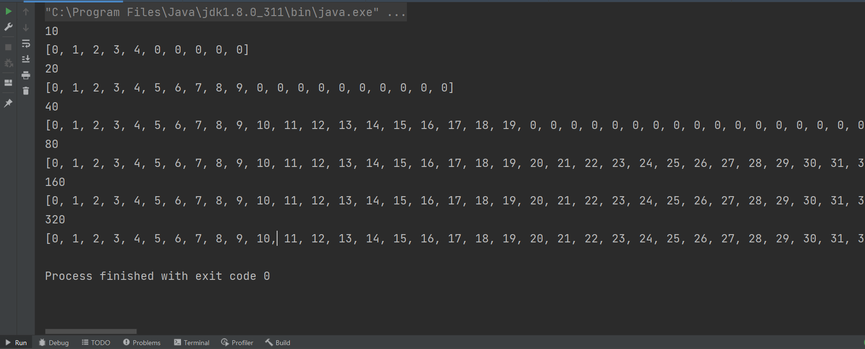 //重新创建一个新数组,使新数组的容量为原数组的2倍
