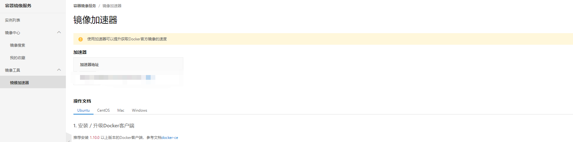 1.登录阿里云找到"容器镜像服务"下的镜像加速器