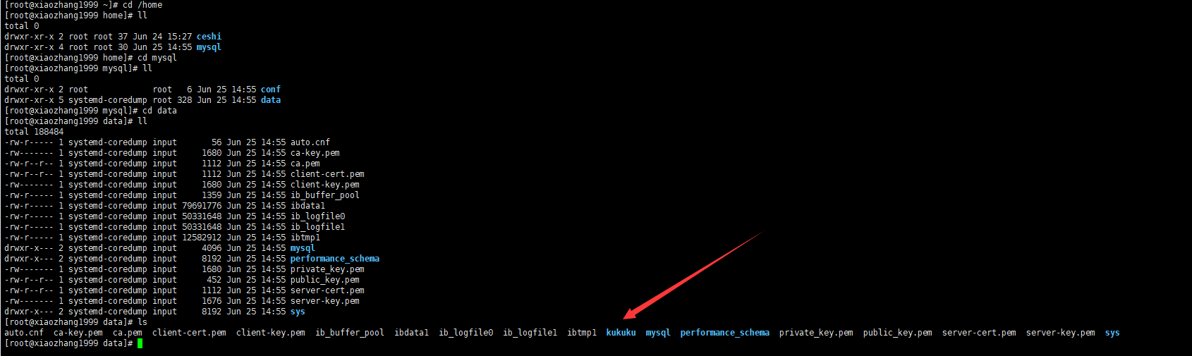 [root@xiaozhang1999 home]# cd mysql