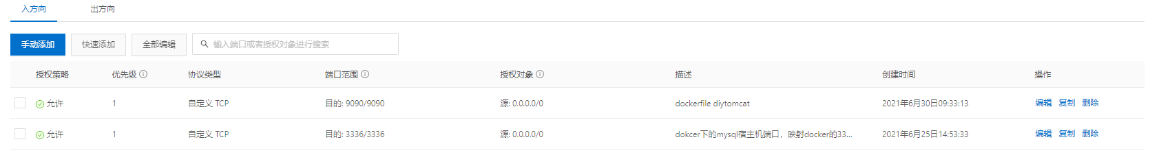 阿里云服务器下:安全组设置配置上述用到的开放端口