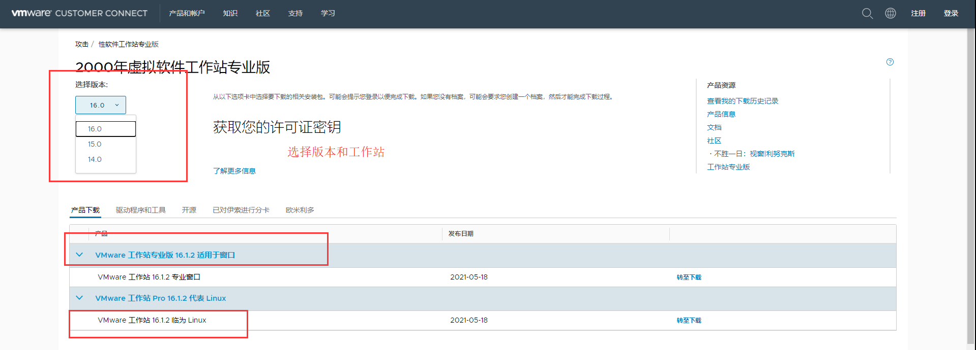 下载链接:https://my.vmware.com/cn/group/vmware/downloads/#products_atoz