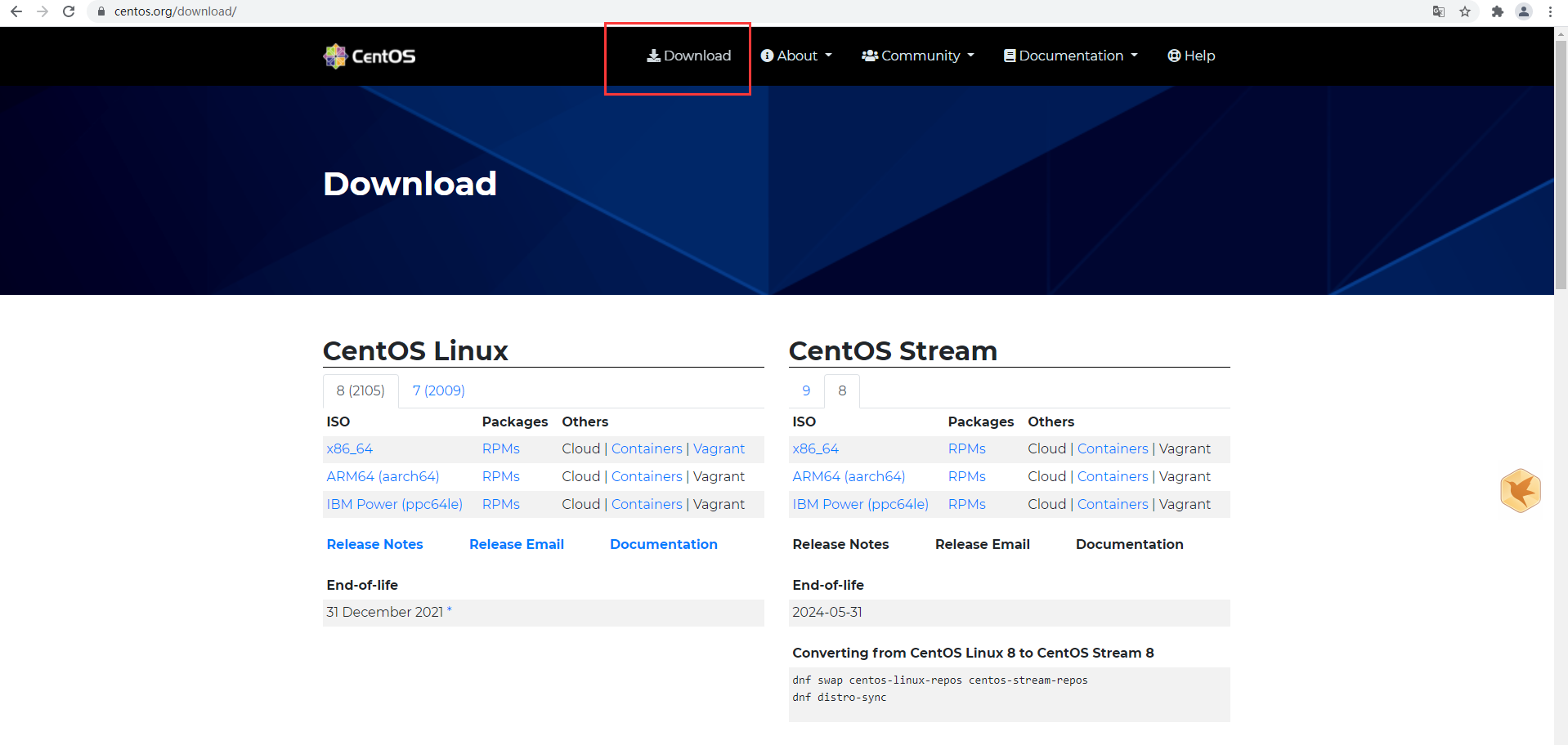 CentOS官网:https://www.centos.org/