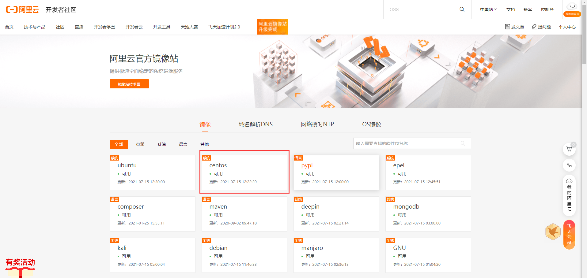 官方镜像网站地址:https://developer.aliyun.com/mirror/