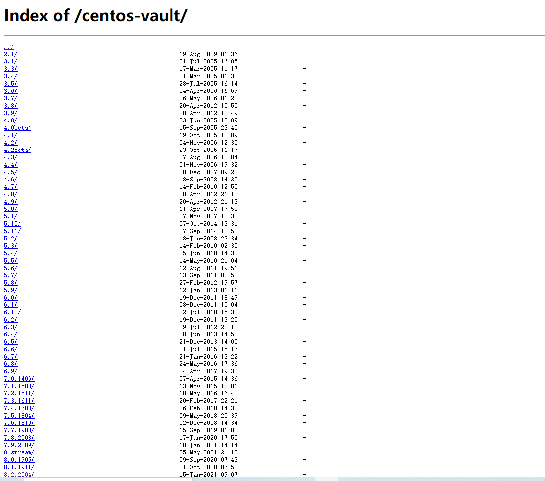 历史镜像链接合集:https://mirrors.aliyun.com/centos/