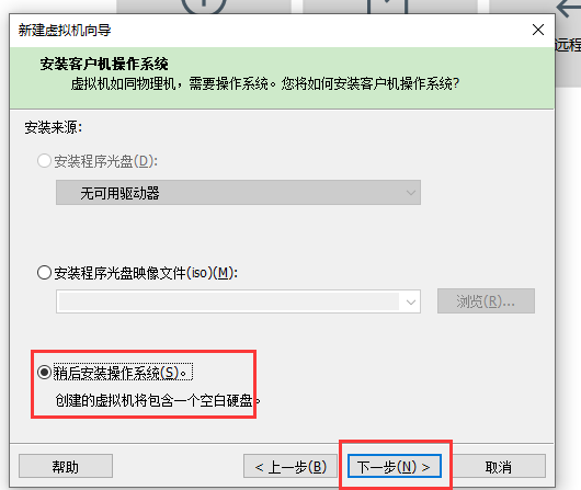 2.选择稍后安装操作系统点击下一步