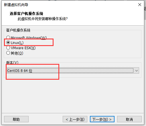 3.选择Liunx、版本选择CentOS8、点击下一步