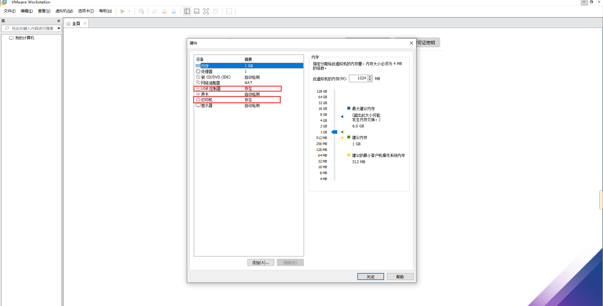 7.移除打印机和USB控制器