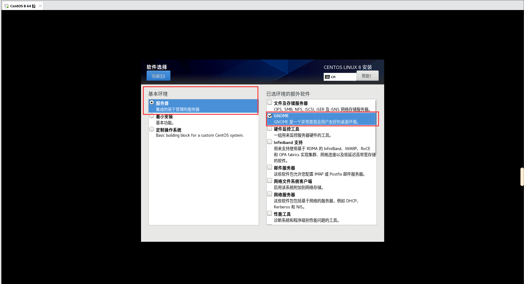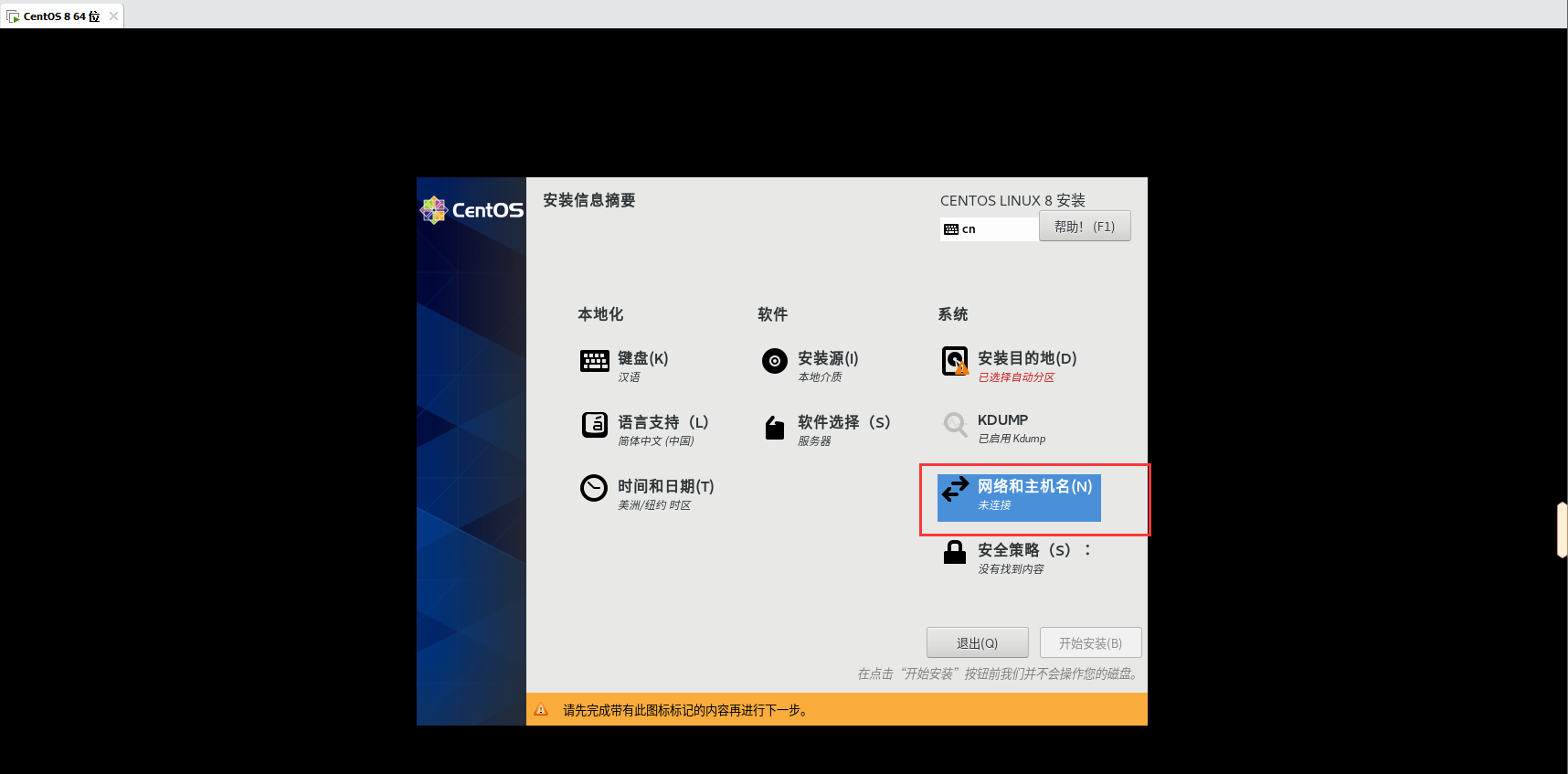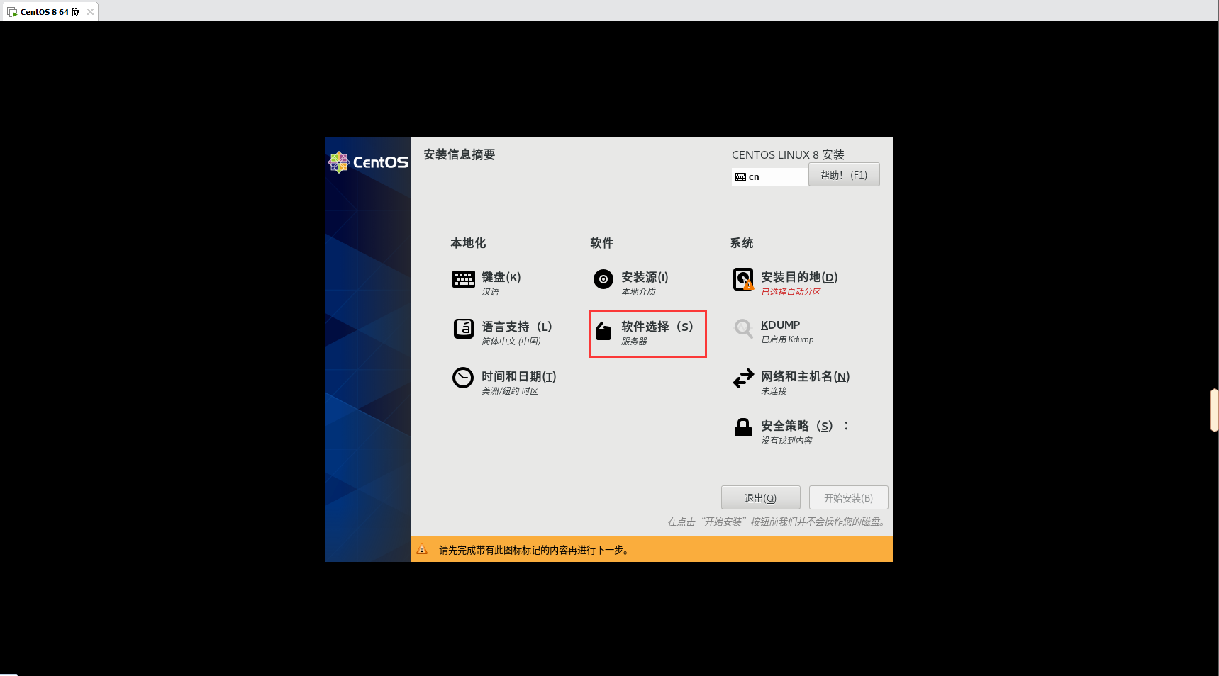 之所以没有Server with GUI选项,是因为我下载的是Minimal ISO