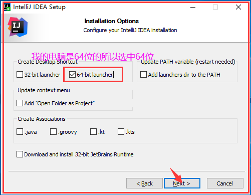 安装最新版的Idea、选择对应的电脑版本32位或64位、关联.java。