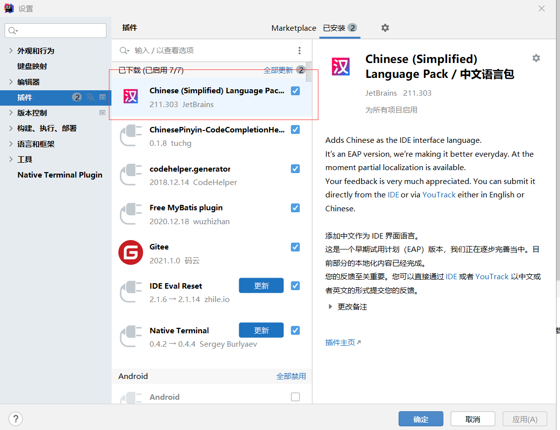 新版Idea、官方提供的有中文插件、这里我说下内网下的安装和有外网情况下的安装。