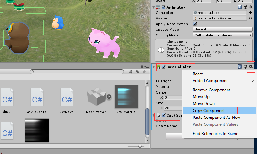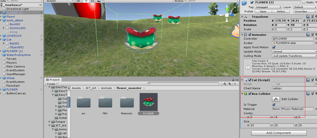 这里的BOX collider 可能不符合大,或者位置,需要调一下size或者center 来包围这个食人花