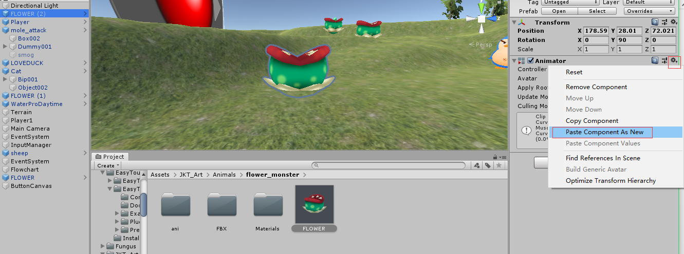 在新NPC(这里是食人花FLOWER(2)) 粘贴组件