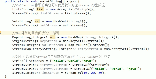 生成流:通过数据源(集合,数组)生成流,list.stream()