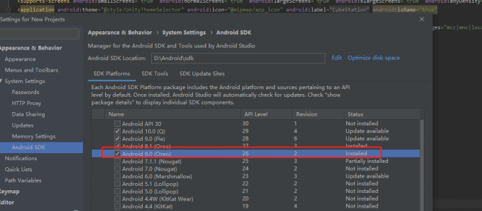 本地测试的时候,用的SDK是7以上的版本(Android 8.0)