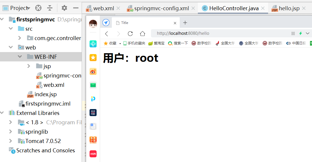 package com.gec.controller; import org.springframework.web.servlet.ModelAndView; import org.springframework.web.servlet.mvc.Controller; import javax.servlet.http.HttpServletRequest; import javax.servlet.http.HttpServletResponse; public class HelloController implements Controller { @Override public ModelAndView handleRequest(HttpServletRequest httpServletRequest, HttpServletResponse httpServletResponse) throws Exception { ModelAndView modelAndView=new ModelAndView(); modelAndView.addObject("username","root"); modelAndView.setViewName("/WEB-INF/jsp/hello.jsp"); return modelAndView; } }