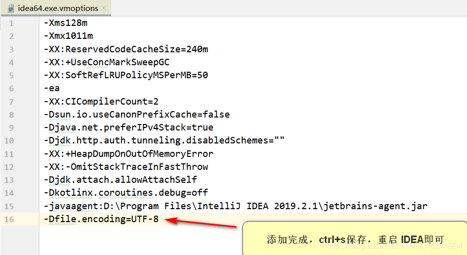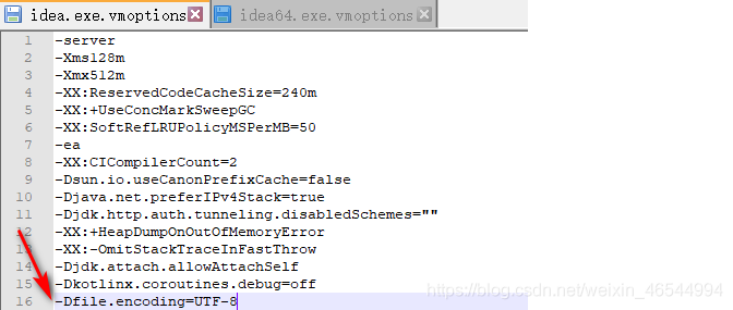 第三步(很关键,有人使用了上面的两个方法都无法解决乱码问题,原因在于你并没有改IDEA运行时的vmoptions)