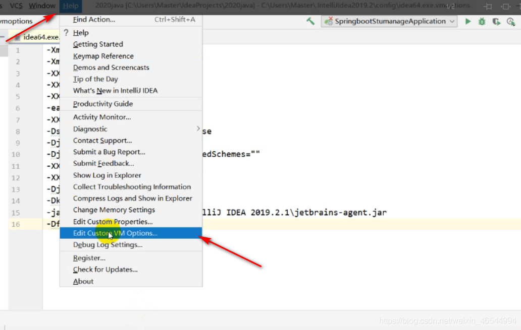 idea路径Help->Edit Custom VM Options