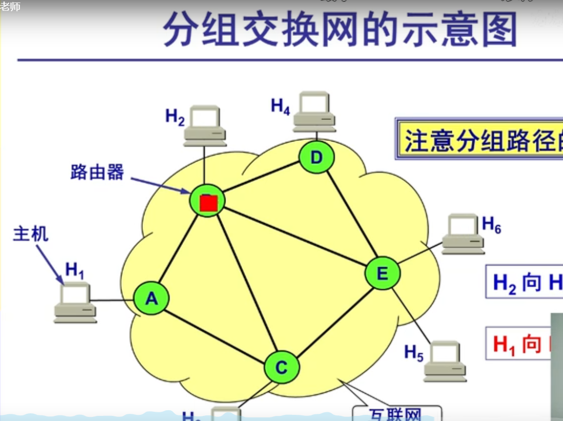 - 分组交换网中的分组交换机根据接收到的分组首部中的控制信息,将分组转发给下一个分组交换机。