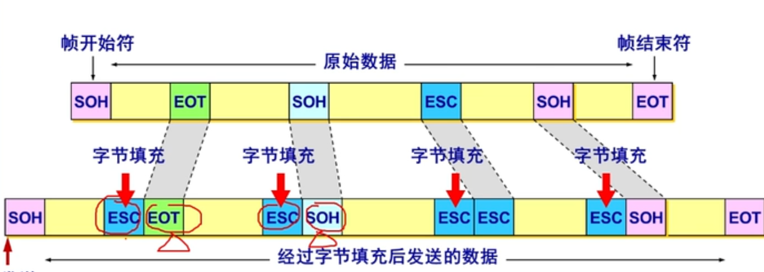 - 封装成帧---选定特殊的字符作为帧定界符;